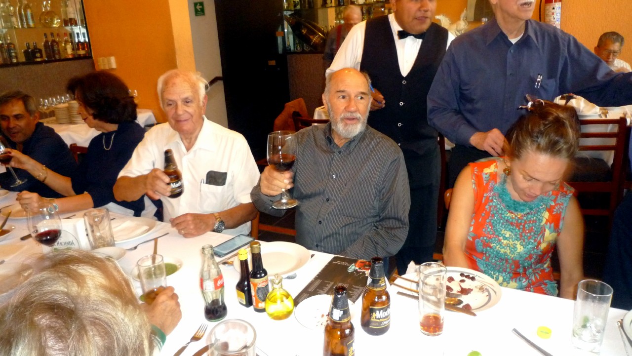 | Durante la comida del 55 aniversario de nuestra Generación, efectuada el 30 de noviembre del 2017, vemos a Juan con la chamarra de nuestra Escuela. |