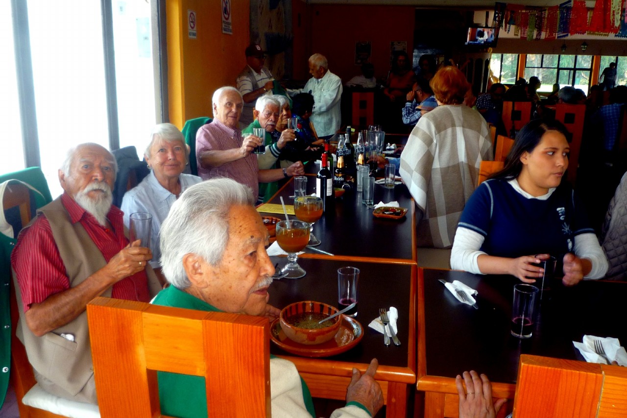 | Dispone de varios salones, pero el restaurante principal es bastante amplio, como para dar servicio a 200 comensales, mientras que su cocina es basta en platillos (aproximadamente 200) y a precios más que razonables, al igual que las bebidas, con la ventaja de que cada quien puede pedir a la carta, en donde sobresalen los platillos típicos. Solamente 20 compañeros conservamos el entusiasmo para desplazarnos a ese bello lugar, por lo que, considerando a parejas, hijos, hijas, nietas y nietos, el número de comensales no pasó de 60. |
